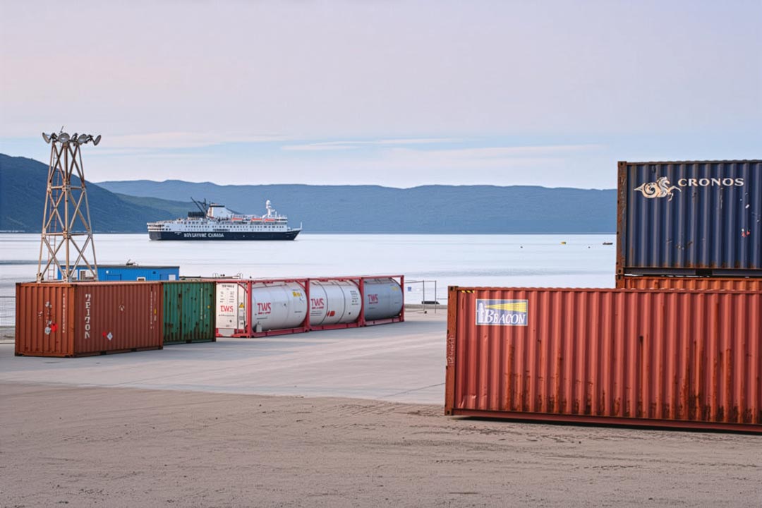 Imarpik ikaarlugu umiarsuarnut talittarfik – takissusaa: 60 m · erngup itissusaa: 8–9 m